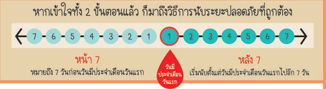 ข้อสำคัญ วิธีคุมกำเนิดด้วยวิธีการนับระยะปลอดภัย หน้า7 หลัง7 นี้ ไม่สามารถป้องกันโรคติดต่อทางเพศสัมพันธ์ได้