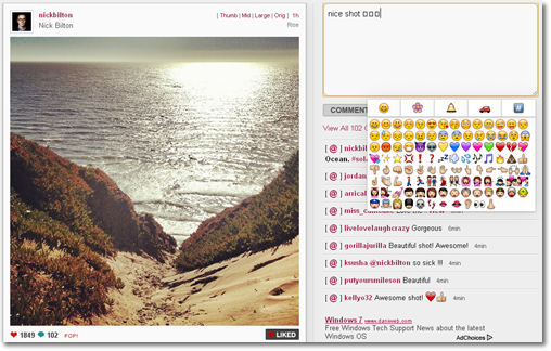 ถ้ากดไปที่รูป จะแสดงผลเป็นรูปขนาดใหญ่ พร้อมมีช่องให้เรา Comment ได้ มี Emoji เหมือนบน iPhone เป๊ะเลย