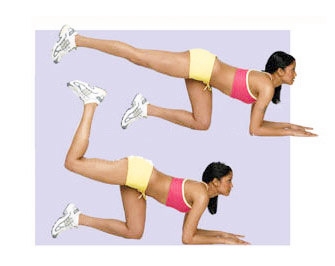 คลานสี่ขา วางข้อศอกราบไปกับพื้น ยกขาขวาขึ้นและเหยียดกลางอากาศ จนขนานกับพื้นแล้วขยับสะโพก แขม่วพุง และตามองตรงไปข้างหน้า ค่อยๆงอเท้ามาทางก้น ค้างไว้สองวินาทีแล้วเหยียด ทำ 10-12 ครั้งแล้วสลับข้างทำ