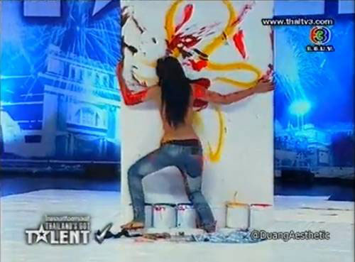 กลายเป็นประเด็นร้อนของสังคมเมื่อปอนด์-ดวงใจ จันทร์เสือน้อย สาวใจถึงแสดงความสามารถเปลื้องผ้าสบัดเต้าวาดภาพ ในรายการ Thailand Got Talent ซึ่งมีสาวเบนซ์-พรชิตา ณ สงขลา คอมเม้นต์เตเตอร์สาวคนเดียวของรายการที่ออกอาการยี้และรับไม่ได้! แถมโวยกรรมการว่าให้ผ่านได้อย่างไร