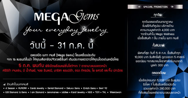 “เมกา เจมส์” (Mega Gems) 16 แบรนด์ชั้นนำให้คุณเลือกช้อปจิวเวลรี่พร้อมโปรโมชั่นพิเศษ