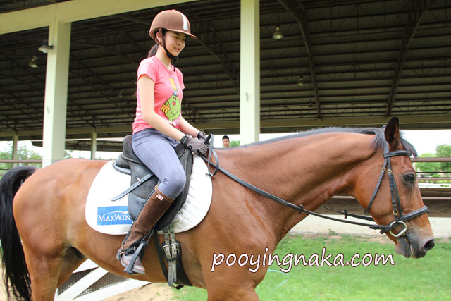 โดยทุกคนที่มาเรียนจะได้ขึ้นขี่หลังม้าตั้งแต่ครั้งแรกเลย  ครูผู้ฝึกจะจัดม้าที่มีลักษณะนิสัยที่เข้ากับผู้ขี่ได้ให้  หรืออาจเริ่มต้นด้วยม้าที่มีนิสัยอ่อนโยน  ใจดี  และไม่กลัวคนแปลกหน้าก่อน  ครูผู้ฝึกจะสอนอย่างใกล้ชิดทั้งท่วงท่าการขี่  ตั้งแต่การขึ้นมา  การจับสายบังเหียน  ไปจนถึงการเดิน  การเหยาะย่าง  และการวิ่ง  โดยจะมีคนจูงม้าคอยดูแลความปลอดภัยให้อีกชั้นหนึ่ง  เพราะฉะนั้นแม้จะเป็นครั้งแรกแต่ผู้เรียนก็จะไม่รู้สึกตื่นกลัวแต่อย่างใด  แต่กลับจะสนุกเพลิดเพลิน  จนไม่อยากลงจากหลังม้าเลยทีเดียวถ้าไม่ติดว่ามันเป็นกีฬาที่เรียกเหงื่อได้เร็ว ทำให้เราได้ใช้ร่างกายทุกส่วน  และเหนื่อยเร็วมาก  อย่างที่น้องเจดกระซิบบอกเราว่า  ผู้หญิงขี่ม้าจะขาเล็กทุกคนค่ะพี่  โอ้วว.....รู้งี้ไปนานแล้ว
