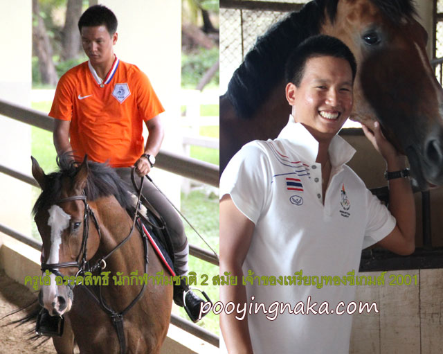 <นอกจากนี้ คุณครูเอ้ หรือ คุณอรรคสิทธิ์  เตียตระกูล  ครูผู้ฝึกสอนขี่ม้าประจำที่นี่  ดีกรีนักกีฬาทีมชาติ 2 สมัย  และเจ้าของเหรียญทองขี่ม้า ในกีฬาซีเกมส์ เมื่อปี 2001 ที่ประเทศมาเลยเซีย  ยังให้คำแนะนำกับผู้ที่สนใจกีฬาขี่ม้า  แต่ไม่เคยมีประสบการณ์มาก่อน  หรือโดยเฉพาะกับสาวๆว่า  “ ขี่ม้าเป็นกีฬาที่ไม่น่ากลัวเลย  ใครๆก็เรียนได้  ขอให้เตรียมใจมาให้พร้อม  และถ้ามีพื้นฐานเป็นคนรักสัตว์อยู่แล้วยิ่งง่ายขึ้นไปอีก  ม้าแต่ละตัวก็จะมีลักษณะนิสัยต่างกันไป  แต่พื้นฐานเค้าจะขี้กลัว  ขี้ตกใจ  ก็ขอให้ปฏิบัติตามครูฝึก  ไม่ทำอะไรที่เป็นการเสี่ยงหรือโลดโผน  สังเกตอารมณ์เค้าง่ายๆที่หู  ถ้าหูลู่ไปข้างหลังเมื่อไหร่ก็ถอยห่างออกมา  อย่าไปยุ่งกับเค้า... ผู้หญิงเดี๋ยวนี้ขี่ม้ากันมากขึ้น  มากกว่าผู้ชายด้วย  ถ้ากลัวเรื่องแสงแดด  กลัวดำ  เราก็มีที่ขี่ม้าในร่มให้  และกีฬาขี่ม้ายังจะช่วยส่งเสริมบุคลิกภาพให้ดูสง่า  และรูปร่างดีอีกด้วย”