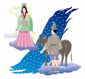 กาลครั้งหนึ่งนานมาแล้วที่ฝั่งแม่น้ำด้านเหนือ ของอามาโนะกาว่า (Ama no gawa) ซึ่งแปลว่าทางช้างเผือกบนสวรรค์ มีลูกสาวของเทพผู้ครองสวรรค์นางหนึ่งชื่อว่าโอริฮิเมะ (Orihime) = ดาววีก้า