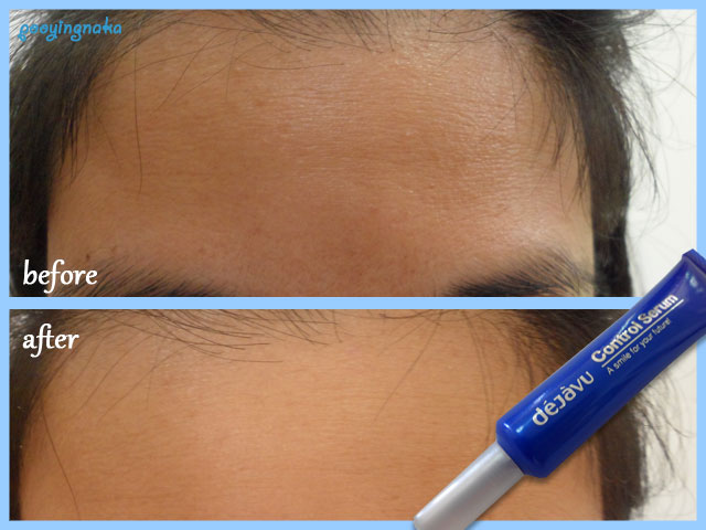 ลองทาที่หน้าผาก ภาพบนจะเห็นผิวมันๆ ภาพล่างหลังใช้ความมันหายไป แต่ไม่ได้ทำให้ผิวหน้าขาวขึ้นนะคะ ภาพทำให้มองเห็นแบบนั้นแต่ไม่ใช่นะคะ และผลิตภัณฑ์ตัวนี้เค้าบอกว่าใช้ได้ทั้งตอนเช้าก่อนแต่งหน้าและใช้หลังครีมบำรุงกลางคืน ใช้ไปเรื่อยๆผิวจะเริ่มไม่มัน ตรงนี้ต้องลองกันเองนะคะ ใครที่ผิวมันใช้แล้วมาบอกกันบ้างนะคะ