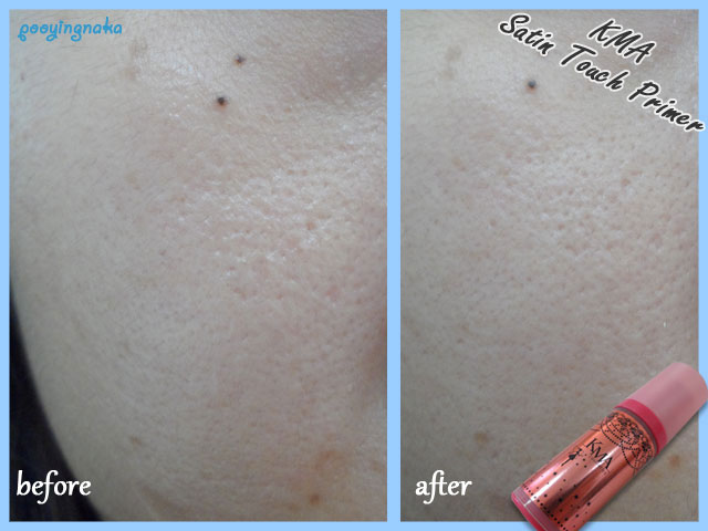 สำหรับของ KMA เนื้อผลิตภัณฑ์เป็นลักษณะเจลซิลิโคน ซึ่งช่วยให้ผิวหน้าบริเวณที่ทาเนียน ลื่นและอำพรางรูขุมขนได้แต่อาจจะไม่มากนักค่ะ แต่เมื่อเราลงผลิตภัณฑ์ทับลงไปจะช่วยให้ผิวหน้าเรียบเนียนขึ้น