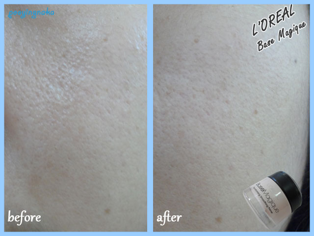 จะเห็นว่า อำพรางรูขุมขนได้บ้างนะคะ แต่ข้อดีคือช่วยให้หน้าไม่มันค่ะ