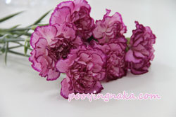 2. ดอกไม้ประดับ เสริมความเด่นของดอกไม้หลัก เลือกตามสีโปรดของคุณแม่ วันนี้เราเลือกคาร์เนชั่นสีม่วงซ้อนจำนวน 6 ดอกค่ะ