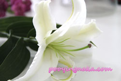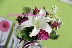 1. ดอกไม้ที่คุณแม่ชอบ แนะนำให้มีดอกไม้หลัก 1 อย่าง วันนี้เราเลือกดอกลิลลี่สีขาวค่ะ