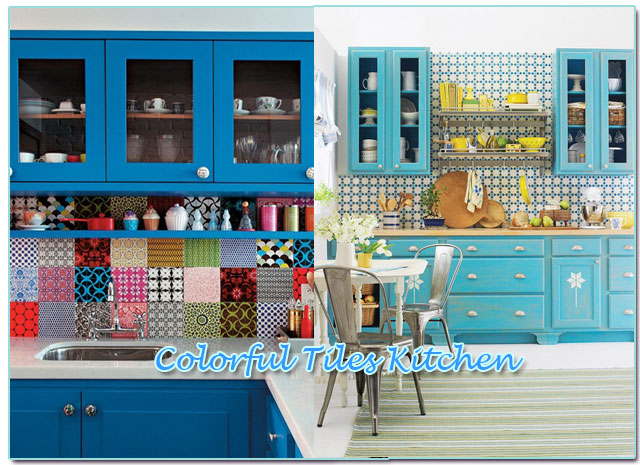 3. ครัวสีจัดจ้าน มีลูกเล่น จุดเด่นอยู่ที่กระเบื้องลายดึงดูดสายตา