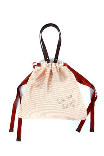 ผลิตด้วยผ้าแคนวาส สายสะพายหนังแท้ มาพร้อมลายมือ with love ของเซอร์ พอล สมิธ รายได้จากการประมูลมอบให้มูลนิธิพัฒนางานผู้สูงอายุ