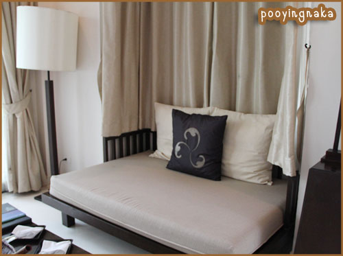 หลังจากออกไปทานข้าวแล้วกลับเข้ามา ที่นอนที่นกนอนพักไว้ก็ถูกพับไว้อย่างเรียบร้อย จุดเทียนหอมไว้รอ และมีใบเตยพับเป็นดอกไม้ไว้ วางไว้บนเตียง (น่ารักอ่ะ)