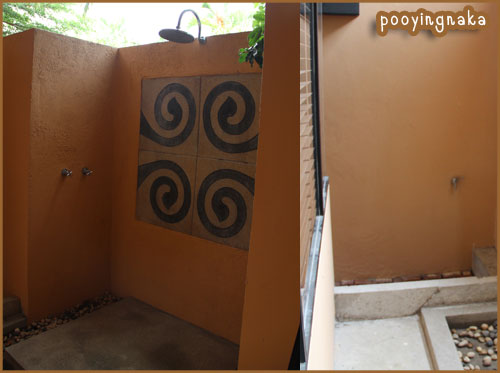 ฝักบัวจะมีด้านในและด้านนอกด้วยนะคะ อาบน้ำได้พร้อมกันหลายคนเลยค่ะ