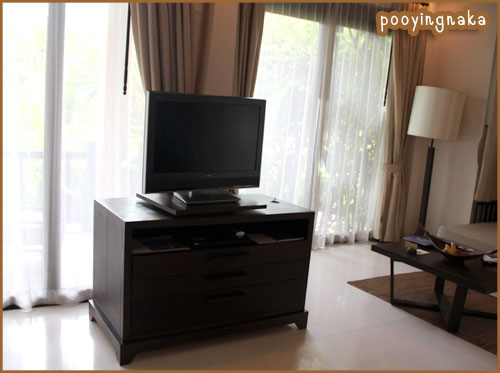 จอทีวีขนาดใหญ่ พร้อมเครื่องเล่นดีวีดี เค้ามีเครื่องเพลงนะคะ เอาแผ่นไปเปิดฟังสบายๆได้ค่ะ แต่เค้าจะมีแผ่นของโรงแรมอยู่