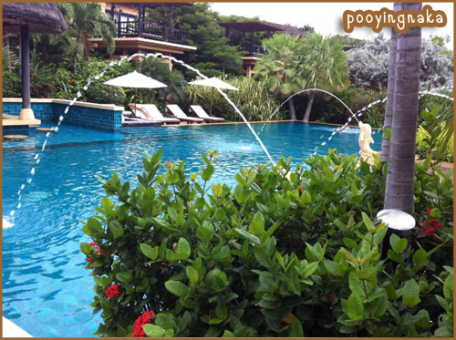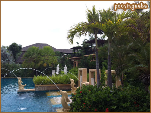ตอนเช้าๆ จะไปทานอาหารก็ออกเด่นเล่นชมโรงแรมซะหน่อย ตรงนี้จากบริเวณสระว่ายน้ำ เราเดินมาอีกหน่อยจะมีทางเดิน
