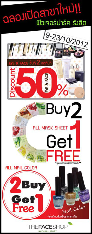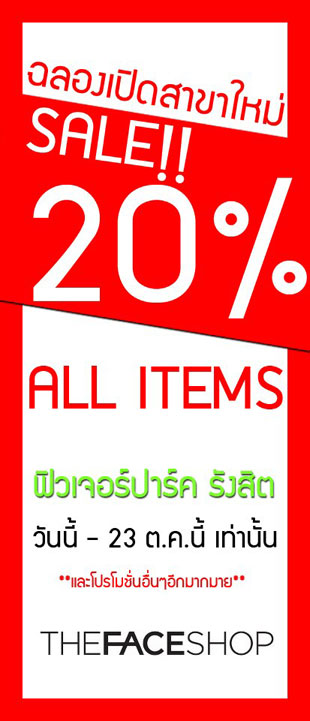 ฉลองเปิดสาขาใหม่ THEFACESHOP Shop สาขา ฟิวเจอร์ปาร์ครังสิต ลด20% ทุกรายการ