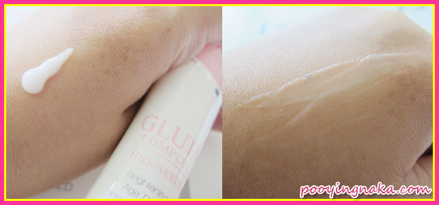 เนื้อเซรั่มจะค่อนข้างบางเบาค่ะ กลิ่นหอมอ่อนๆ ซึมเข้าสู่ผิวได้ไว มีส่วนผสมของกลูต้าไธโอนและHyaluronic Acid ช่วยเรื่องความกระจ่างใสและเรื่องริ้วรอยค่ะ แต่ต้องใช้เวลาในการใช้สักระยะใหญ่ๆ และที่สำคัญเลยคือเราก็ต้องใช้ครีมกันแดดด้วยนะคะ ผิวจะค่อยๆกระจ่างขึ้นค่ะ