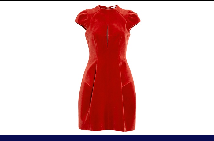 1. เริ่มจากเดรสกำมะหยี่แดงสด Carven Velvet cap-sleeve dress