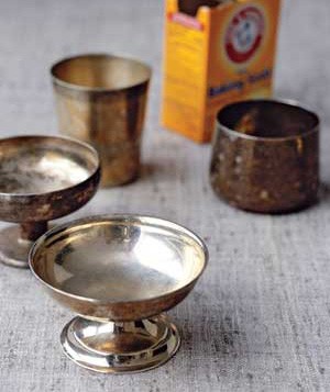 ใช้เบคกิ้งโซดา ขัดเครื่องเงิน โดยแช่เครื่องเงินของคุณในน้ำ 1 ลิตร : เบคกิ้งโซดา 1/4 ถ้วย : เกลือ2-3 ช้อนชา แล้วห่อคลุมด้วยอะลูมินั่มฟอยด์ทิ้งไว้สักครู่ แล้วคุณจะพบผลที่น่าทึ่งของมัน