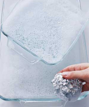 ใช้อะลูมินั่มฟอยด์กับน้ำยาล้างจานธรรมดาในการทำความสะอาดถ้วยจาน จำพวกเครื่องแก้ว อาจเป็นฟอยด์ที่คุณใช้ทำอาหารแล้วนั่นแหละค่ะ ทั้งรียูส ทั้งได้ประโยชน์ แหม..ใครเห็นเป็นต้องอยากได้ไปเป็นแม่บ้าน 555