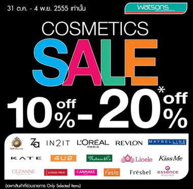Watsons Cosmetics Sale 10-20% ทุกสาขา ตั้งแต่วันนี้-4 พ.ย. นี้