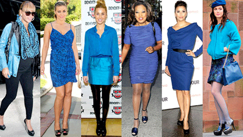 ความหมายของสีน้ำเงิน คือ ความมั่นคง สุภาพ น่าเชื่อถือ มีอำนาจ และความลึกลับ อิทธิพลของสีน้ำเงิน จะทำให้ดูเป็นผู้หญิงที่มีความมั่นใจ แต่สุขุมลุ่มลึก มีพลังซ่อนเร้น น่าค้นหา แต่สำหรับคนที่ไม่ชอบสีน้ำเงินสด แบบ Cobalt Blue หรือน้ำเงินเข้ม ก็ลองผสมด้วย สีBaby Blue ดูเป็นสาวน่ารัก หวานๆขึ้นมานิดนึงก็ได้ค่ะ ต้องลองมิกซ์แอนด์แมทช์กันดูนะคะ ขอให้สนุกกับการแต่งตัวค่ะ