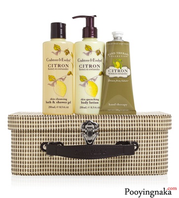 ชุดผลิตภัณฑ์ Citron, Coriander and Honey จาก Crabtree & Evelyn ประกอบด้วยบอดีซูเฟล่ สบู่ก้อนอาบน้ำ บอดี้สครับ เจลอาบน้ำ ครีมบำรุงผิว ครีมบำรุงผิวมือและลดริ้วรอยมือ