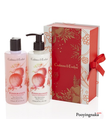 Pomegranate Argan & Grapeseed ชุดผลิตภัณฑ์ระดับเบสต์เซลเลอร์ที่ได้รับความนิยมอย่างสูงในเวลานี้ กลิ่นของ Collection Pomegranate ได้รับแรงบันดาลใจจากพันธุ์ไม้ของประเทศโมร็อคโค โดยรังสรรค์ผ่านการผสมผสานกันของกลิ่นพันธุ์ไม้หอมเข้ากับความหอมหวานของผลทับทิม ใบของมะเดื่อและมะนาว มีส่วนผสมของ Argan Oil ซึ่งอุดมไปด้วยวิตามิน E เอกลักษณ์เฉพาะของพันธุ์ไม้แห่งดินแดนโมร็อคโค รวมทั้ง Grapeseed Oil ที่ช่วยในการบำรุงผิวและฟื้นฟูสภาพผิวให้เนียนนุ่มขึ้น และ Pomegranate Oil ซึ่งเปี่ยมด้วยสารเพิ่มความชุ่มชื้นแก่ผิวและสารต่อต้านอนุมูลอิสระธรรมชาติอันเข้มข้นด้วย จึงให้คุณประโยชน์ในการดูแลผิวพรรณอย่างสมบูรณ์แบบ เพื่อเป็นของขวัญให้คนที่คุณรักในช่วงเทศกาลปีใหม่