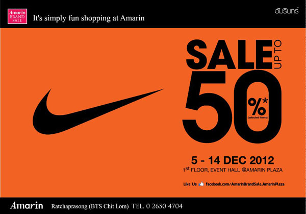 เอาใจคนรักกีฬาโดยเฉพาะ พบกับเสื้อผ้า รองเท้า และอุปกรณ์กีฬาจากแบรนด์ Nike, Adidas, Crocs, Umbro และ Wilson ลดสูงสุด 50% พบกันที่ ชั้น1 Event Hall ศูนย์การค้า Amarin Plaza ตั้งแต่วันนี้ - 14 ธ.ค. 2555