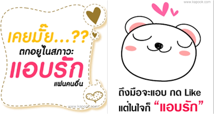 ฉะนั้นการที่คุณจะไปรู้สึกดีๆกับเขา จึงเป็นเพียงแค่การเก็บกลั้นความรู้สึกไว้ภายในใจ แสดงออกไม่ได้ ทั้งที่วันๆคุณอาจจะพร่ำเพ้อคิดถึงเขาอยู่วันละแสนแปดรอบ เฮ่ออ แล้วใครมันจะไปให้เขารู้ล่ะ จริงไหม? แล้วยิ่งแฟนตัวจริงของเขารู้ด้วยล่ะก็.. ไม่ต้องพูดถึง เตรียมตัวเปิดฉากสงครามเลือดสาดได้เลย