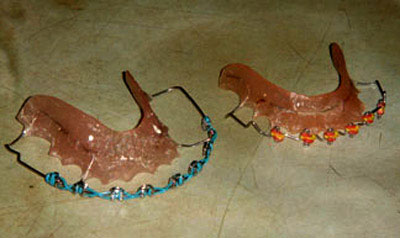 - โดยหลักๆ เราจะเห็นเรื่องมือที่เหมือนรีเทนเนอร์ ที่เป็นพลาสติกใสคล้ายกับฟันปลอม รีเทนเนอร์เป็นเครื่องมือประเภทหนึ่งที่จะคอยช่วยพยุงฟันไม่ให้ฟันที่จัดเอาไว้ดีแล้วเปลี่ยนตำแหน่ง แต่เมื่อเราเติมสปริงบางตัวเข้าไปในรีเทนเนอร์ มันจะกลายเป็นเครื่องมือจัดฟัน เพราะสปริงดังกล่าว จะมีแรงในการเคลื่อนฟัน เหมาะสำหรับฟันที่ไม่เป็นอะไรมาก และคนไข้ที่ไม่อยากมีเหล็กอยู่เต็มปาก