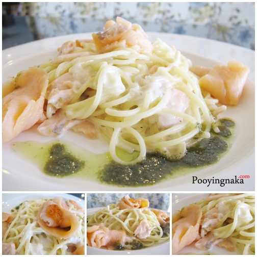 อีกเมนูของห้องอาหารอิตาเลียนก็คือ Pasta Con Salmone, Vodka e Uova di Pesce คือพาสต้าแซลมอนรมควัน จะมีไข่ปลาแซลมอนโรยด้านบนนิดหนึ่งค่ะ