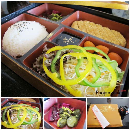 เป็น Tonkatsu Bento Set ที่มาพร้อมกับมิโสะซุป หมูชุบแป้งทอด สลัดและผักดอง พร้อมข้าวญี่ปุ่นค่ะ