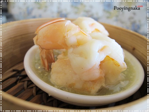 กุ้งแชบ๊วยนึ่งมะนาว รสชาติจัดจ้านและกุ้งตัวใหญ่มาก ใน 1 ชุดมีกุ้ง 2 ตัว และ 2 ตัวสามารถตัดแบ่งทานกันได้หลายคำเลยค่ะ เนื้อกุ้งแน่นๆ สดๆ ประกอบกับรสชาติของน้ำจิ้ม อร่อยมากๆ