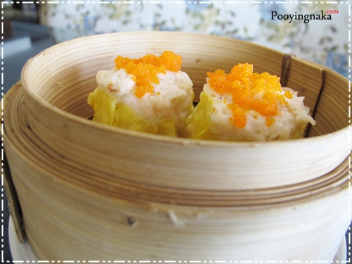 ขนมจีบกุ้ง ชิ้นโตที่โรยหน้าด้วยไข่กุ้ง รสชาติกลมกล่อม กุ้งหวานมากค่ะ
