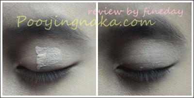 ผลิตภัณฑ์มีลักษณะเป็นครีม สีเนื้อ ใช้แต้มนิดเดียวพอ ทาบางๆ เกลี่ยง่ายค่ะ ตัวนี้เขาเขียนว่าไม่เป็นคราบ แต่พอทาเสร็จก็ต้องปล่อยให้ซึมซาบเข้าสู่ผิวสักแปปนึง เพราะถ้ารีบลงอายแชโดวส์ทับก็จะมีโอกาสเป็นคราบได้เหมือนกันนะคะ