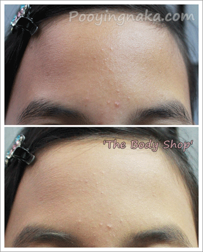 ตลับที่รีวิวนี้คือ Shade 045 สีออกเหลืองค่ะ ส่วนเนื้อแป้ง บางเบาไม่หนักหน้า มีคุณสมบัติให้การปกปิดอย่างเรียบเนียน มีส่วนผสมของมารูล่าออยล์ที่บำรุงผิวหน้าให้ชุ่มชื่น ดูกระจ่างใส ไม่มันวาว สังเกตได้จากบริเวณหน้าผากที่มีสิวและผิวมัน เมื่อทาแป้งก็ได้รับการปกปิดพอสมควร แต่เรื่องควบคุมความมันดีเยี่ยมเลยค่ะ