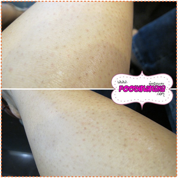 เสร็จแล้วค่ะ เค้าบอกว่าอย่าให้โดนน้ำ 2 ชั่วโมง อ๊าาาาาาก แล้วจะเข้าห้องน้ำยังไงเนี่ย อืม...ก็เข้าค่ะ แต่จริงๆไม่นานก็ซึมสู่ผิว อาจจะเกือบๆชั่วโมง มันไม่เหนอะแต่จะรู้สึกว่ามีน้ำมันบนผิวค่ะ