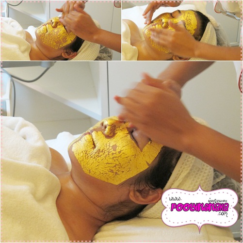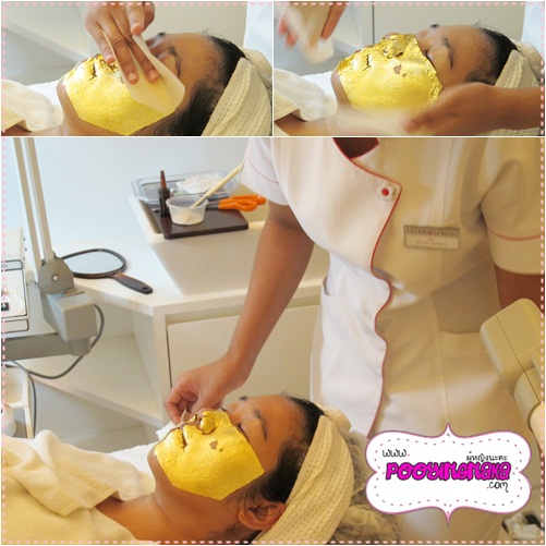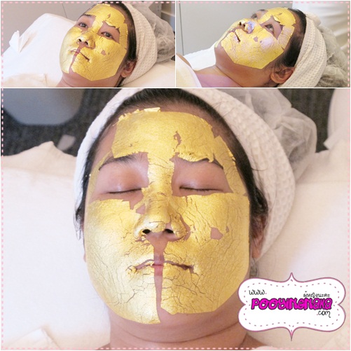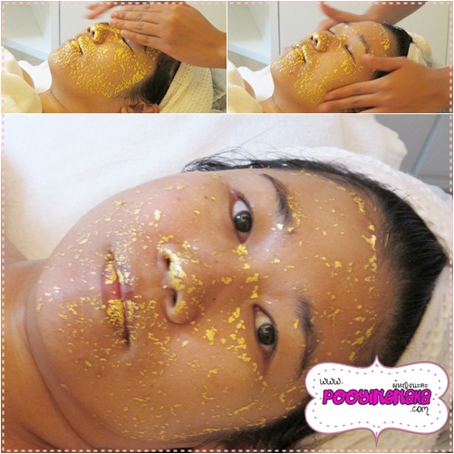 ครบเวลาก็ถึงเวลาสำคัญ  ดีดเคาะแผ่นทอง  และนวดคลึงทั่วใบหน้าเพื่อให้ทองค่อยๆ ละลายและซึมซาบลงสู่ผิวอย่างช้าๆ   จากนั้นเช็คทำความสะอาด  และปิดท้ายด้วยการทาครีมบำรุงผิวที่มีส่วนผสมของกันแดด เพื่อการปกป้องผิวจากมลพิษ