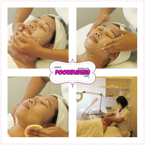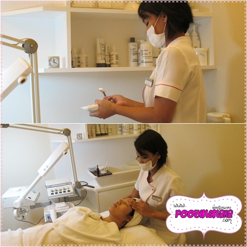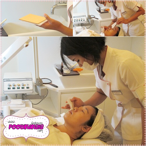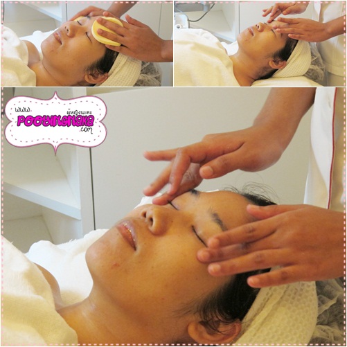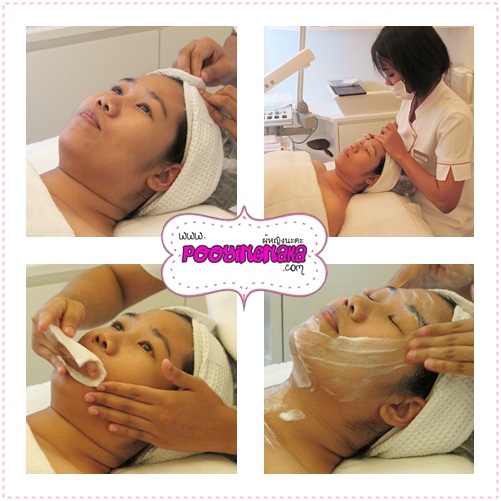หลังจากนั้นก็เปลี่ยนชุดค่ะ แล้วก็จะเป็นขั้นตอนการทำความสะอาดผิวหน้า นกไม่ได้แต่งหน้าไป เพราะยังไงต้องล้างออก แนะนำเลยค่ะว่าเวลาไปทำทรีทเม้นต์ที่หน้าไม่ควรแต่งหน้าค่ะ โดยเฉพาะการกรีดไลเนอร์และปัดมาสคาร่าแบบกันน้ำนะคะ