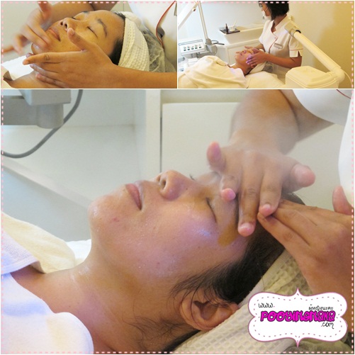 ในขั้นตอนถัดมาคือการเตรียมผิว ขั้นตอนนี้นกรู้สึกว่านาน (สำหรับนกนะคะ) แต่จริงๆ 10-15 นาทีเองค่ะ ต้องเตรียมผิวให้พร้อมจริงๆ นวดผิวด้วย Carrier ซีรั่มเข้มข้นที่มีส่วนผสมของ Gamma PGA และ วิตามินต่างๆ เพื่อวอร์มผิวให้อ่อนนุ่ม จากนั้นสเปรย์ผิว ด้วย Facial Spa System โดยหยดสารอาหารบำรุงผิวจาก Carrier และ Booster ที่ช่วยมอบความชุ่มชื้นให้กับผิวอย่างล้ำลึก ใส่ในเครื่อง Facial Spa System  เค้าจะพ่นละอองออกมา รู้สึกสดชื่นดีค่ะ