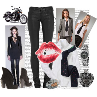 รองเท้า สามารถเลือกได้ตามใจชอบ ขึ้นอยู่กับเสื้อผ้าและงานที่คุณจะไป ถ้าสมมติว่าคุณสวมกระโปรง ก็สามารถเลือกเป็นรองเท้าส้นสูง แต่ถ้าให้เท่จริงก็จัดบู๊ทหุ้มข้อแบบมีส้น หรือไม่ก็รองเท้าสไตล์ออกซ์ฟอร์ดไปเลยค่ะ