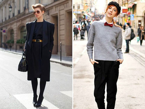 ส่วนของเสื้อ เป็นแจ็คเก็ต เบลเซอร์ เชิ้ต หรือเสื้อยืด สามารถนำมามิกซ์กับกระโปรงในเวลาที่ไม่ต้องการสวมกางเกง หรือจะเบรกความมาดแมนด้วยสีสันที่อ่อนหวานก็ได้