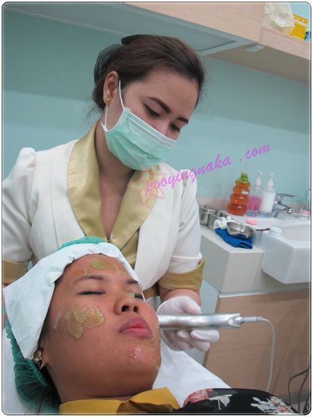 หลังจากนั้นทีมแพทย์ก็ลงมือกดสิวอุดตันค่ะ พอหลังจากกดสิวอุดตันแล้วก็ได้ทำการฉีดยาตรงบริเวณสิวที่อักเสบเพื่อลดการอักเสบ และต่อด้วยการทำทรีทเม้นท์เพื่อกระชับรูขุมขนและเพื่อให้ตัวยามีประสิทธิภาพมากขึ้นค่ะ
