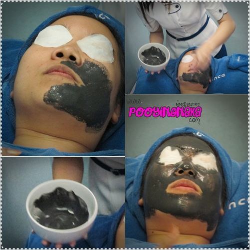 หลังทำความสะอาดใบหน้าเสร็จ ก็ลงมือมาส์กหน้าเลยค่ะ ตอนนี้นกโดนปิดตาละ เค้าบอกว่ามาส์กตัวนี้ช่วยดูดเอาของเสียในผิวออกไป ทำให้หน้าสะอาดค่ะ ก็มาส์กไว้ 15 นาทีค่ะ แล้วก็ทำความสะอาดอีกครั้งค่ะ หลังจากเสร็จสิ้นรู้สึกเลยว่าผิวหน้าเราสะอาด รู้สึกสดชื่นขึ้นค่ะ