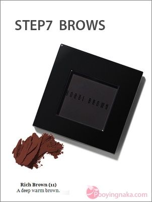 STEP 7 BROWS ดูสีของคิ้วให้เข้มกว่าสีผมนิดนึง สามารถใช้ eyeshadow วาดลงไปบนคิ้วได้เลยค่ะ โดยเฉพาะคนที่ทำสีผม  แนะนำให้ใช้ eyeshadow ที่มีของเราผสมๆให้มีสีที่พอดีได้ง่ายขึ้น แถมยังประหยัดอีกต่างหาก