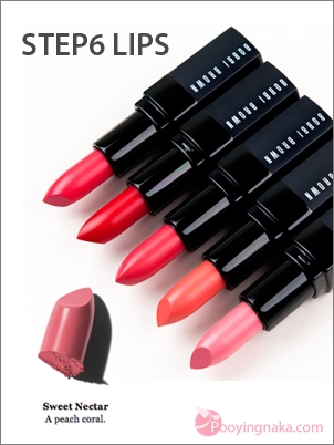 STEP 6 LIPS สีของลิปสติกก็ไม่ต้องจัดจ้านเกินไปนะคะ เลือกสีอ่อนๆ หรือสีออกชมพูนู้ด ลุคนี้ขอดวงตาเด่นเด้งที่สุดค่ะ