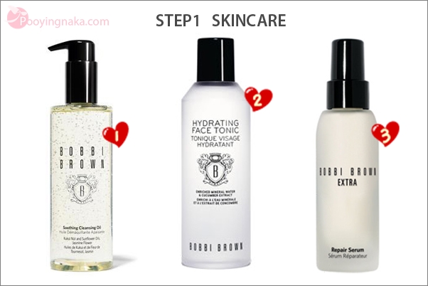 STEP 1 ขั้นตอนการเตรียมผิว เริ่มจากการทำความสะอาดผิวหน้าด้วย Soothing Cleansing Oil เช็ดคราบสกปรกและเครื่องสำอางออกให้หมดก่อน แล้วตามด้วย Hydrating Tonic และ Extra Repair Serum บำรุงผิวให้ชุ่มชื่น เพื่อเตรียมผิวสำหรับการแต่งหน้า เครื่องสำอางจะติดทนมากขึ้นนะคะ