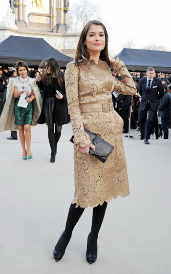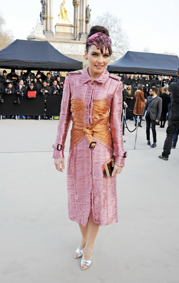 นางแบบและนักแสดงเชื้อสายบราซิลเลี่ยนมากับเดรส BURBERRY ลูกไม้สีน้ำตาล ดีไซน์ทะมัดทะแมง แบบเวิร์คกิ้งวูแมน  ทำให้ลุคสาวบราซิลเลี่ยนแลดูเรียบโก้ไปอีกแบบ