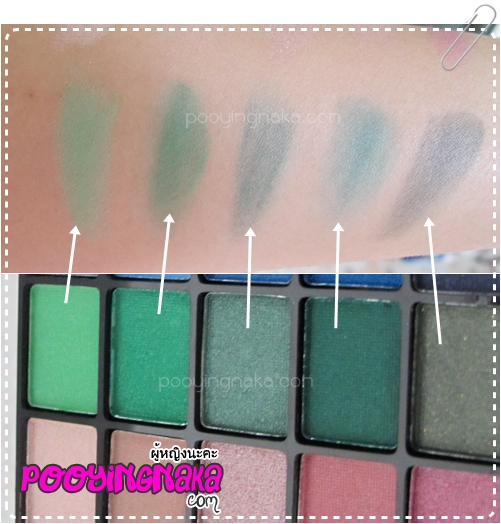 สำหรับโทนเขียว สีจะชัดเกือบทั้งหมด แต่สีที่ 4 ก็ยังคงต้องปาดหลายทีเหมือนกันค่ะ